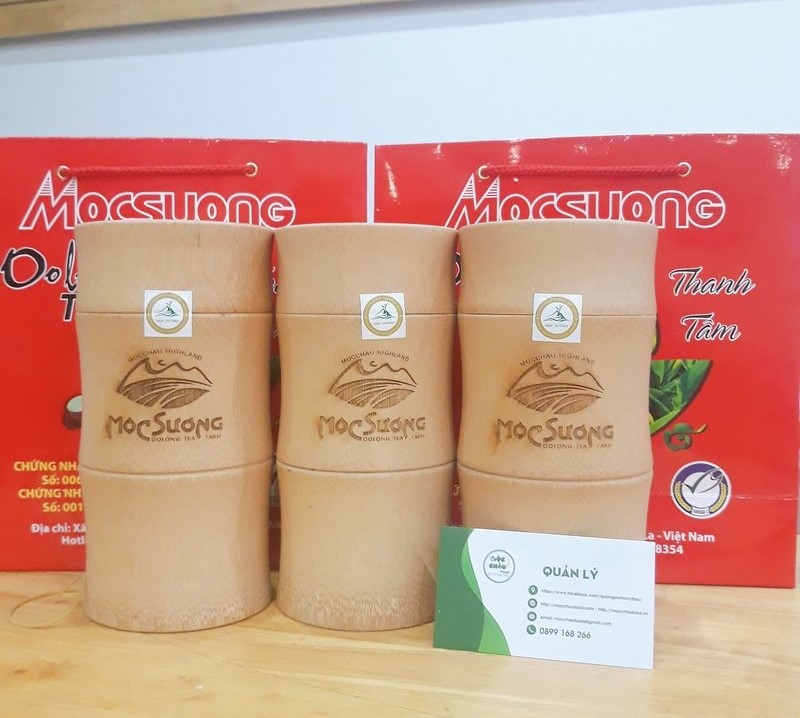 Mộc Sương là đơn vị đầu tiên ở Mộc Châu cho những gói trà ô long thanh tâm ngon tuyệt hảo của mình đóng trong những hộp tre, trúc được thiết kế đẹp long lanh, bắt mắt. Sau đó, Mộc Châu Food cũng cho ra đời sản phẩm trà Mộc Châu hộp tre đựng trà ô long và trà shan tuyết Chiềng Yên.