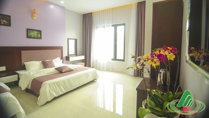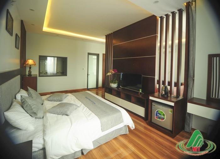 Khách sạn có các phòng 1 giường đôi, 2 giường đôi, 2 giường đơn, tất cả đều được trang bị nội thất tốt, phong cách chuyên nghiệp với đầy đủ trang thiết bị: tắm nóng lạnh, tủ lạnh, tủ quần áo, bàn trà, TV LCD, wifi miễn phí, sấy tóc....