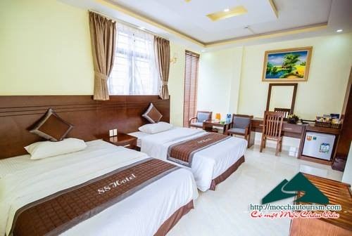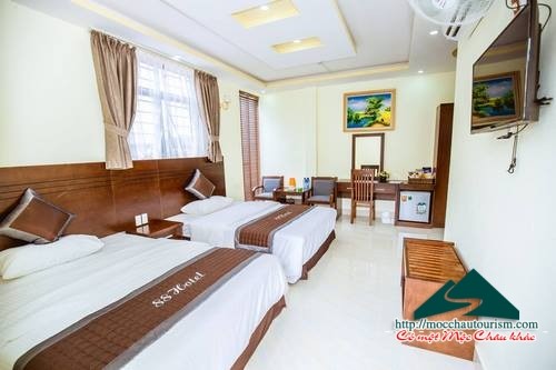 Khách sạn 88 Mộc Châu có 20 phòng tiêu chuẩn, đầy đủ tiện nghi: tủ lạnh, điều hòa, sấy tóc, tivi LCD, đồ uống, bàn trang điểm...
