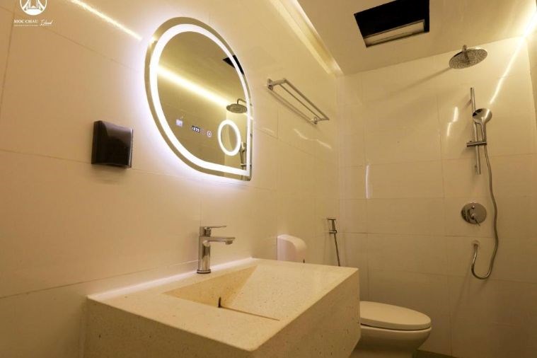 Mỗi phòng nghỉ của khách sạn đều có sân hiên nhìn ra quang cảnh núi non. Các phòng nghỉ tại Mộc Châu Island Mountain Park And Resort - The Bullet Hotel được trang bị máy điều hòa và một số phòng có ban công. Các phòng được trang bị ga trải giường.