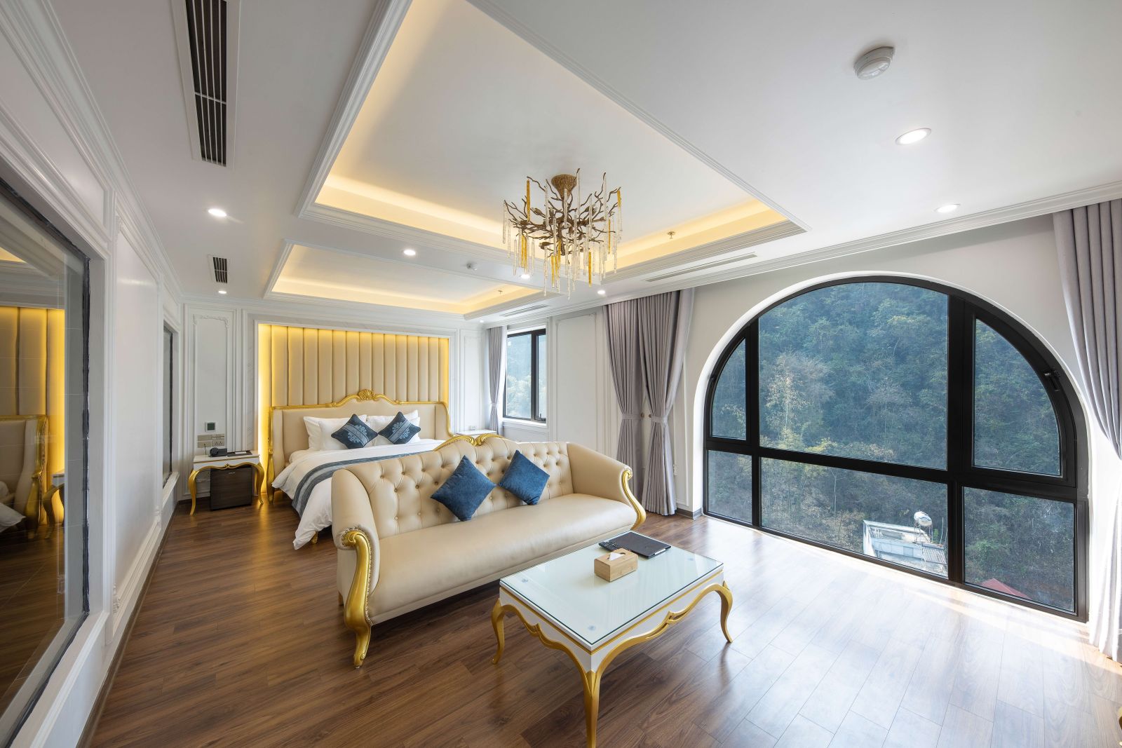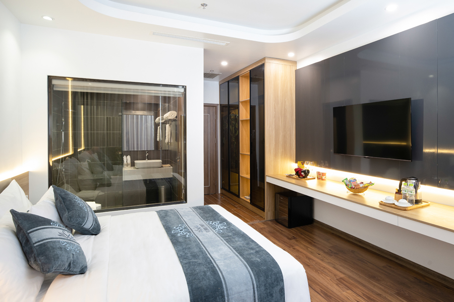 Khách sạn Glenda Tower Mộc Châu sở hữu hạng phòng Executive Suite độc đáo và lộng lẫy, được dát vàng 24K. Toàn bộ nội thất gỗ được chế tác tỉ mỉ từ dòng gỗ gõ trăm năm tuổi, đem đến trải nghiệm sang trọng và cao cấp cho du khách