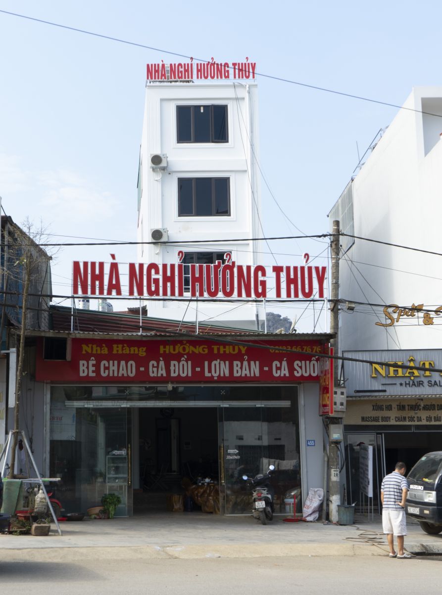 Nhà nghỉ Hưởng Thủy Mộc Châu, địa chỉ Tiểu khu Nhà Nghỉ, thị trấn Nông Trường Mộc Châu.