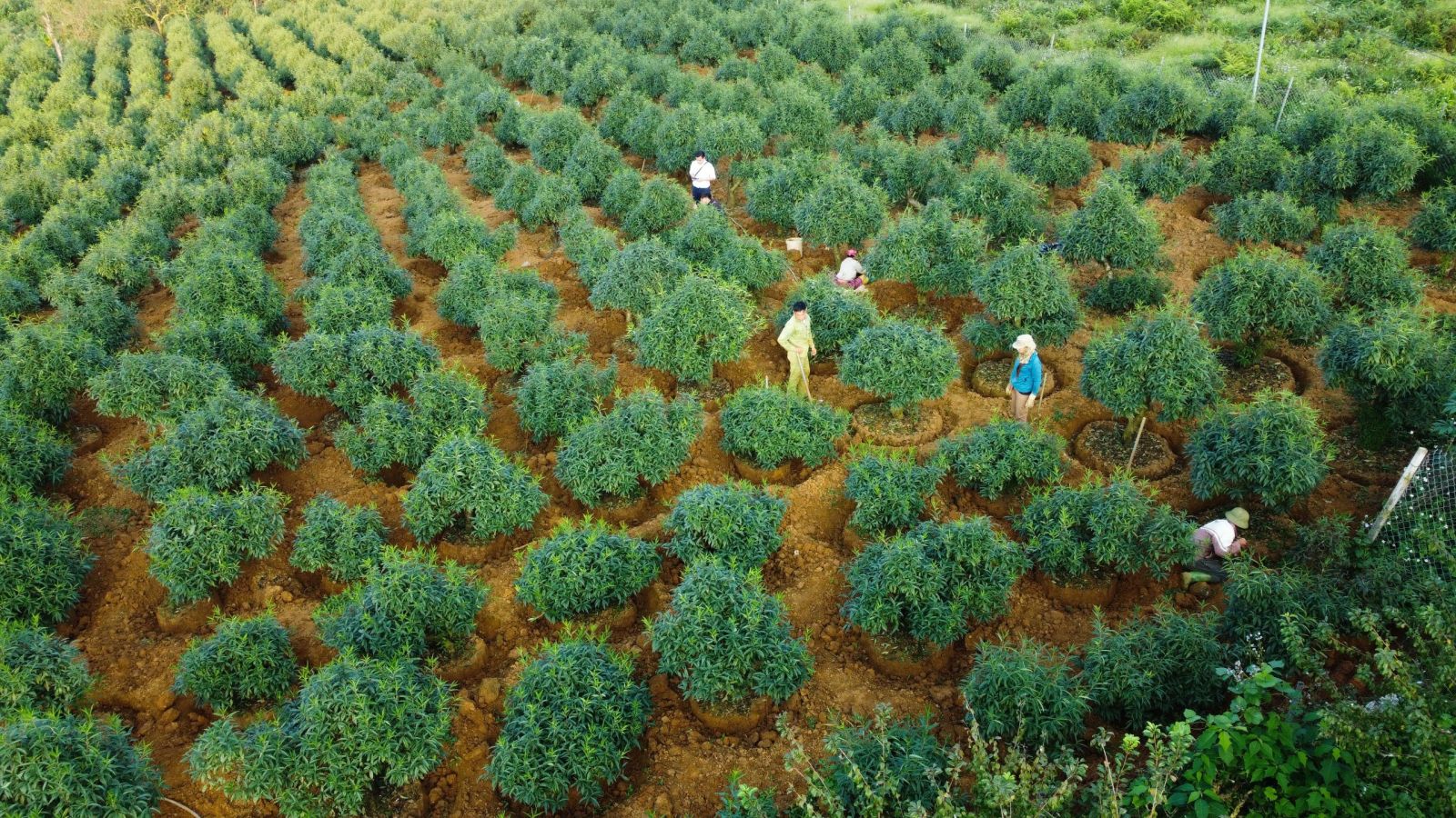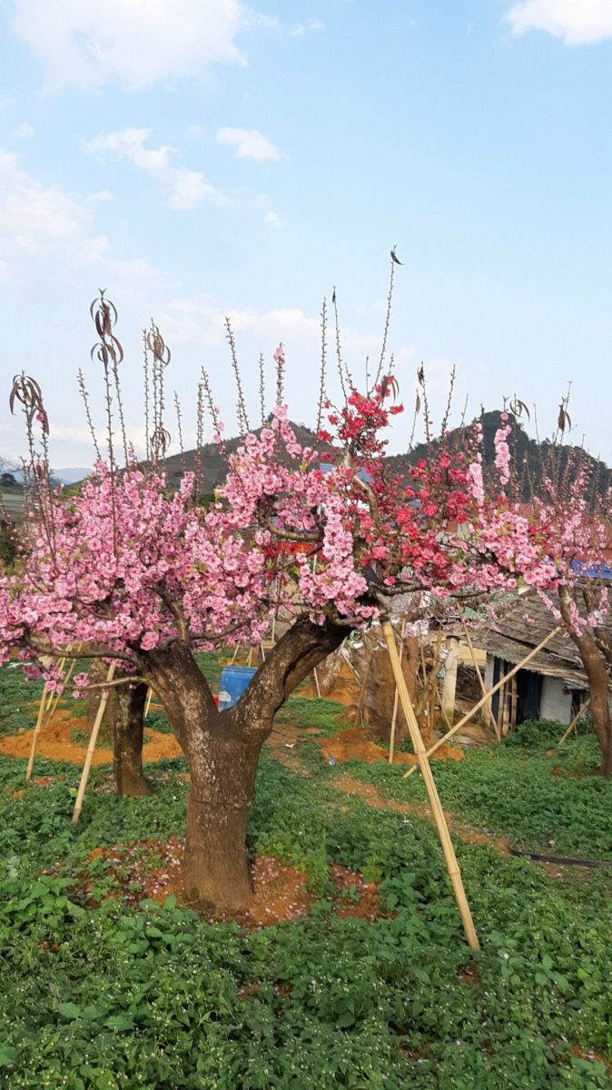 Vườn đào cổ của gia đình anh Nguyễn Văn Đức, ở tiểu khu Mía Đường, thị trấn Nông Trường Mộc Châu có diện tích gần 1ha với trên 1.000 cây đào cổ, đào phai và đào Thất Thốn để phục nhu cầu của người chơi đào vào dịp Tết. Thời điểm trước tết từ 2-3 tháng, người trồng đào phải chăm sóc cẩn thận, tỉa rễ, ghép mắt, tạo dáng, thế cho từng cây và xử lý đất để hoa ra có thể nở đúng vào dịp Tết Nguyên đán. Trong đó có nhiều gốc đào thân xù xì mấy chục năm tuổi.