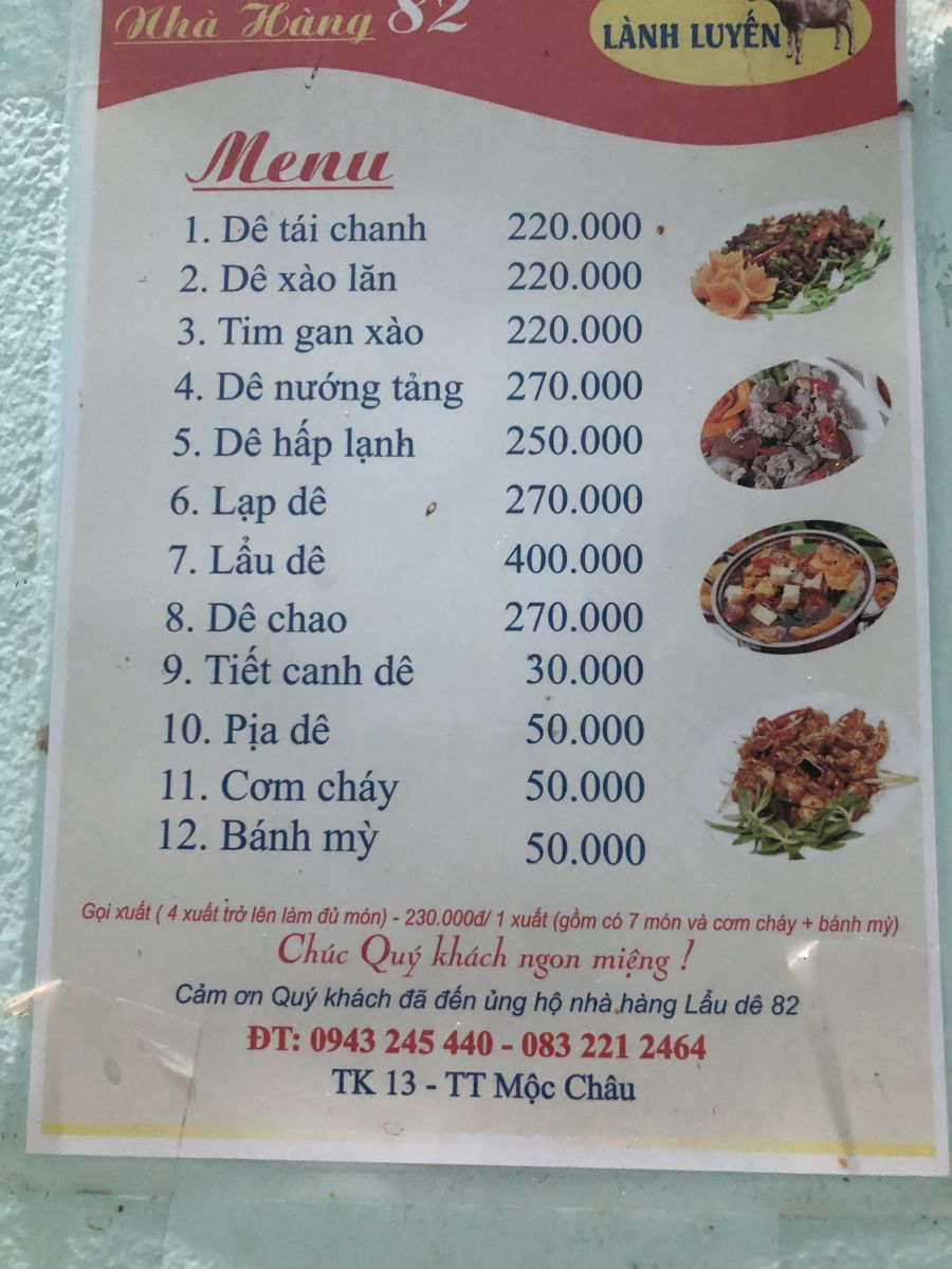 Là quán dê lâu đời nhất nhì mộc châu nổi tiếng với các món như dê tái chanh,dê nướng tảng,dê hấp và không thế thiếu lẩu dê và nhiều món khác