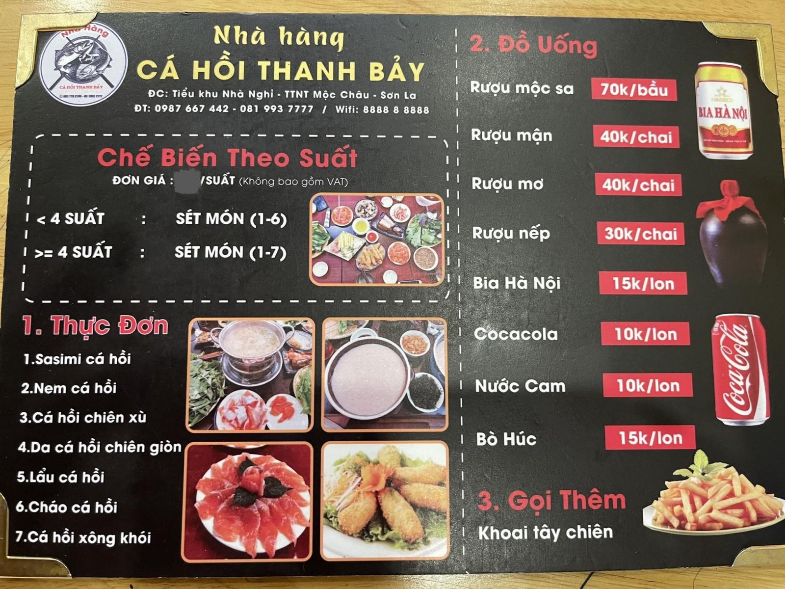 Nhà hàng cá hồi Thanh Bẩy là nhà hàng chuyên về cá hồi mở đầu tiên tại Mộc Châu với combo 7 món cá hồi.
