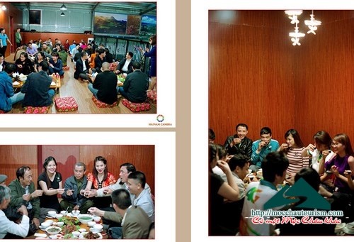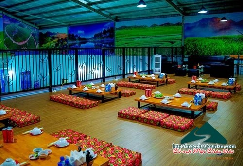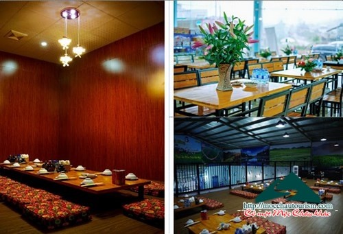 Từ đây, du khách có thể dễ dàng kết nối với các điểm du lịch nổi tiếng của Mộc Châu như đồi chè trái tim, đồi chè Mộc Sương, đồng cỏ, các trang trại bò sữa, Động Sơn Mộc Hương, Rừng thông bản Áng, Khu di tích lịch sử lưu niệm Trung đoàn 52 Tây Tiến... Đến với nhà hàng, du khách được thưởng thức các món ăn độc đáo về nguyên liệu, hương vị và phong cách chế biến. Từ các món ăn truyền thống của các dân tộc vùng Tây Bắc như: Bê Chao, Gà đồi, Cá Suối, rau rừng… đến những món ăn mang đậm phong cách Việt với nguồn nguyên liệu hoàn toàn tự nhiên, đảm bảo vệ sinh an toàn thực phẩm và được chế biến bởi đôi bàn tay khéo léo, tài hoa của những đầu bếp chuyên nghiệp, giúp mỗi món ăn mang hương vị riêng, đặc trưng và hấp dẫn lạ thường. Bên cạnh đó, du khách còn được thưởng thức các món ăn mang hương vị 3 miền Bắc - Trung - Nam với chất lượng dịch vụ tốt nhất do các nhân viên chuyên nghiệp phục vụ.