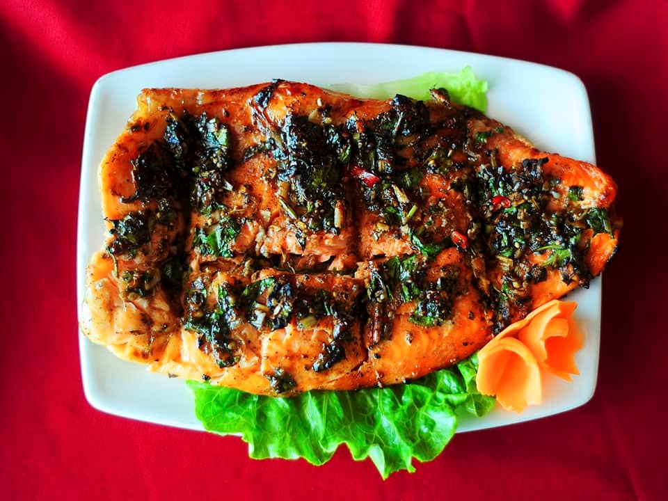 Cá hồi nướng than hoa tại Cá hồi 64 Mộc Châu