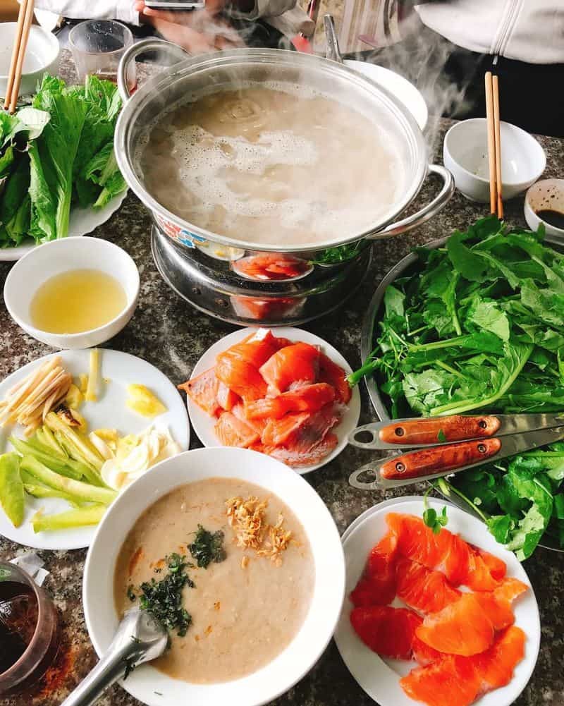 Món lẩu cá hồi hấp dẫn tại nhà hàng Cá hồi 64 Mộc Châu