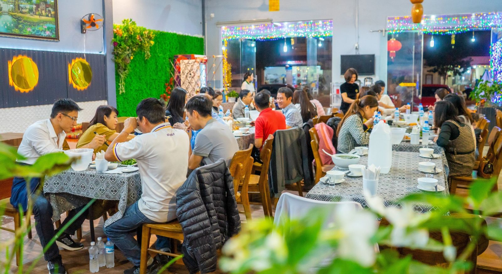 Không gian: Nhà hàng có 2 sảnh Gala , không gian tiếp đoàn lên tới 400 khách, tích hợp âm thanh, ánh sang, màn hình Led và có không gian riêng tư phù hợp với khách đoàn thể và gia đình.