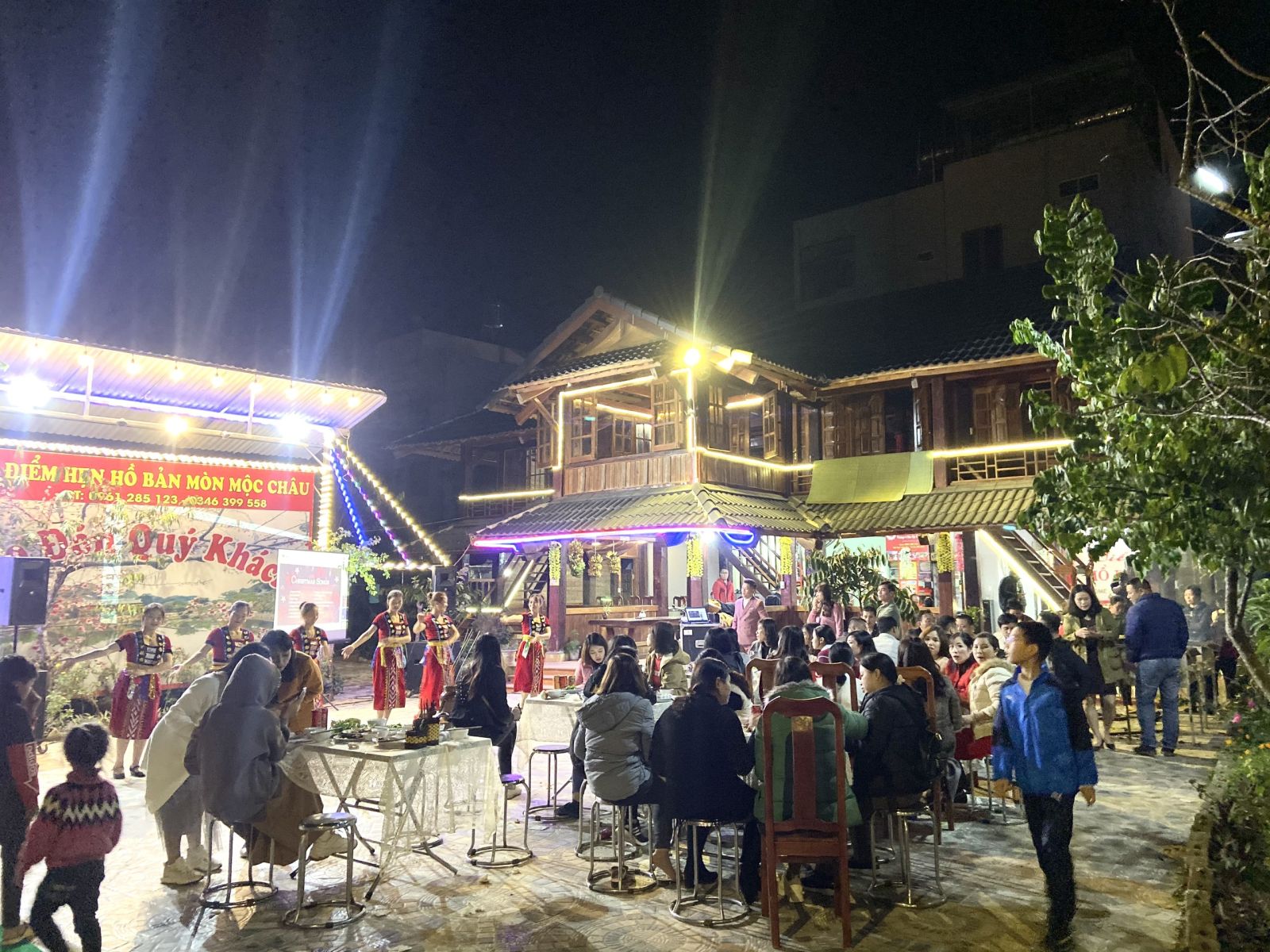 Ngoài ra, Điểm Hẹn Hồ Bản Mòn còn phục vụ các chương trình giao lưu văn nghệ lửa trại, trải nghiệm múa xoè nhảy sạp.